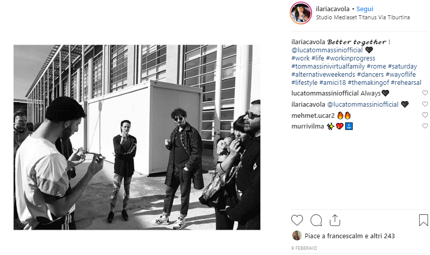 Mai poi Luca che, tra le tante, il 27 Febbraio ca. vada in giro dentro (foto di Tommasini con alle pareti i concorrenti di quest'anno) e fuori dagli studi di Amici ecc. col pigiamino nero dei finalisti di Amici17, ditemi voi...