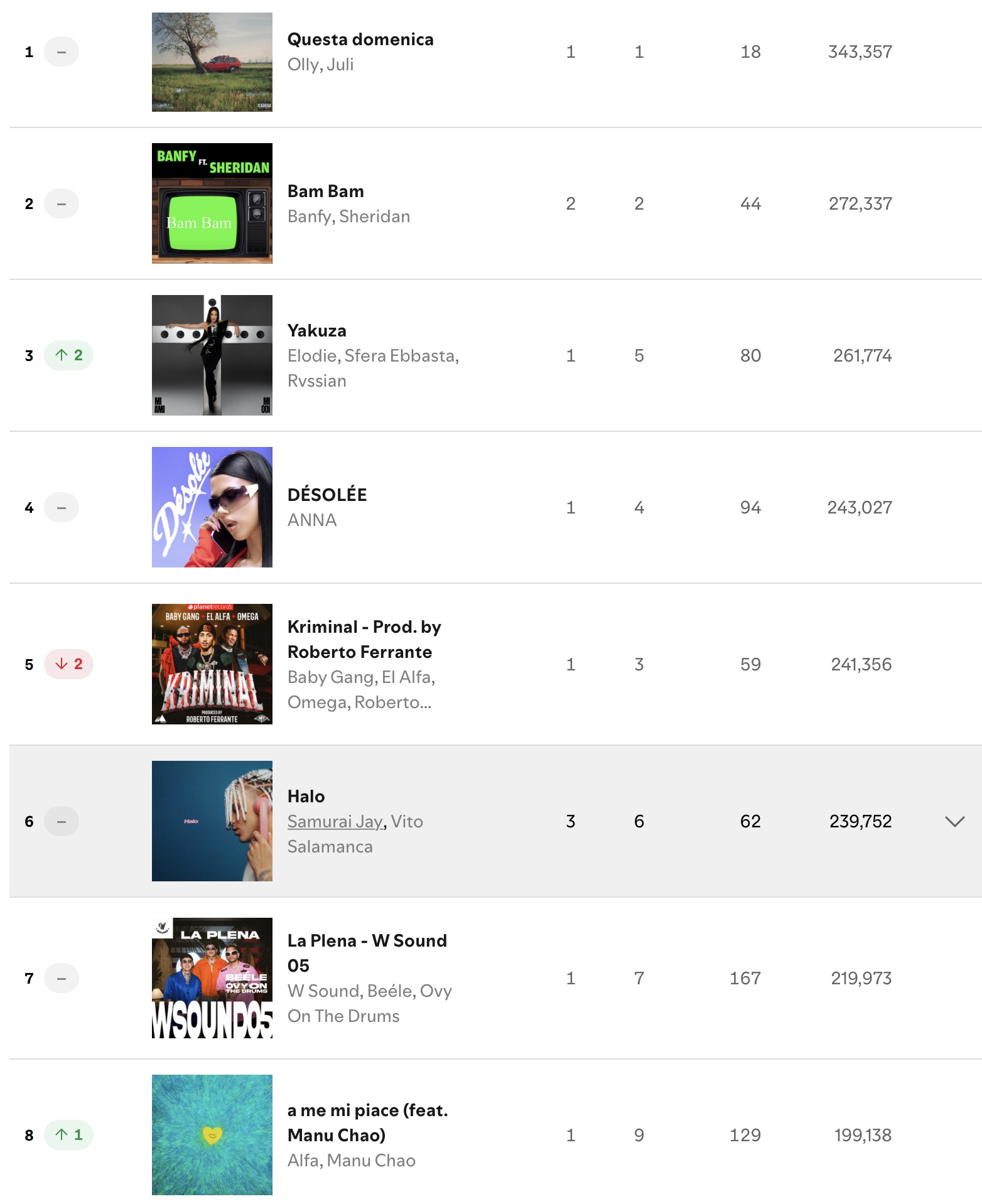 ed è la top 10. Se si fa a verso la top 50 il divario è ancora più marcato. O c’erano un sacco di ascolti tarocchi o non so. Ok l’innalzamento delle soglie, ma con questi numeri davvero si certificherà solo un po’ d’estate ed un po’ sotto Sanremo, e poi deserto dei tartari.
