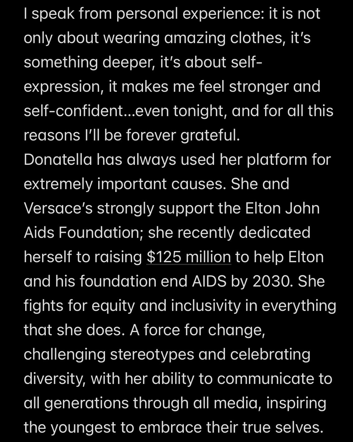 OfflineMarco alla settimana della moda ha premiato Donatella Versace ai SustainableFashionAwards con un bellissimo discorso.