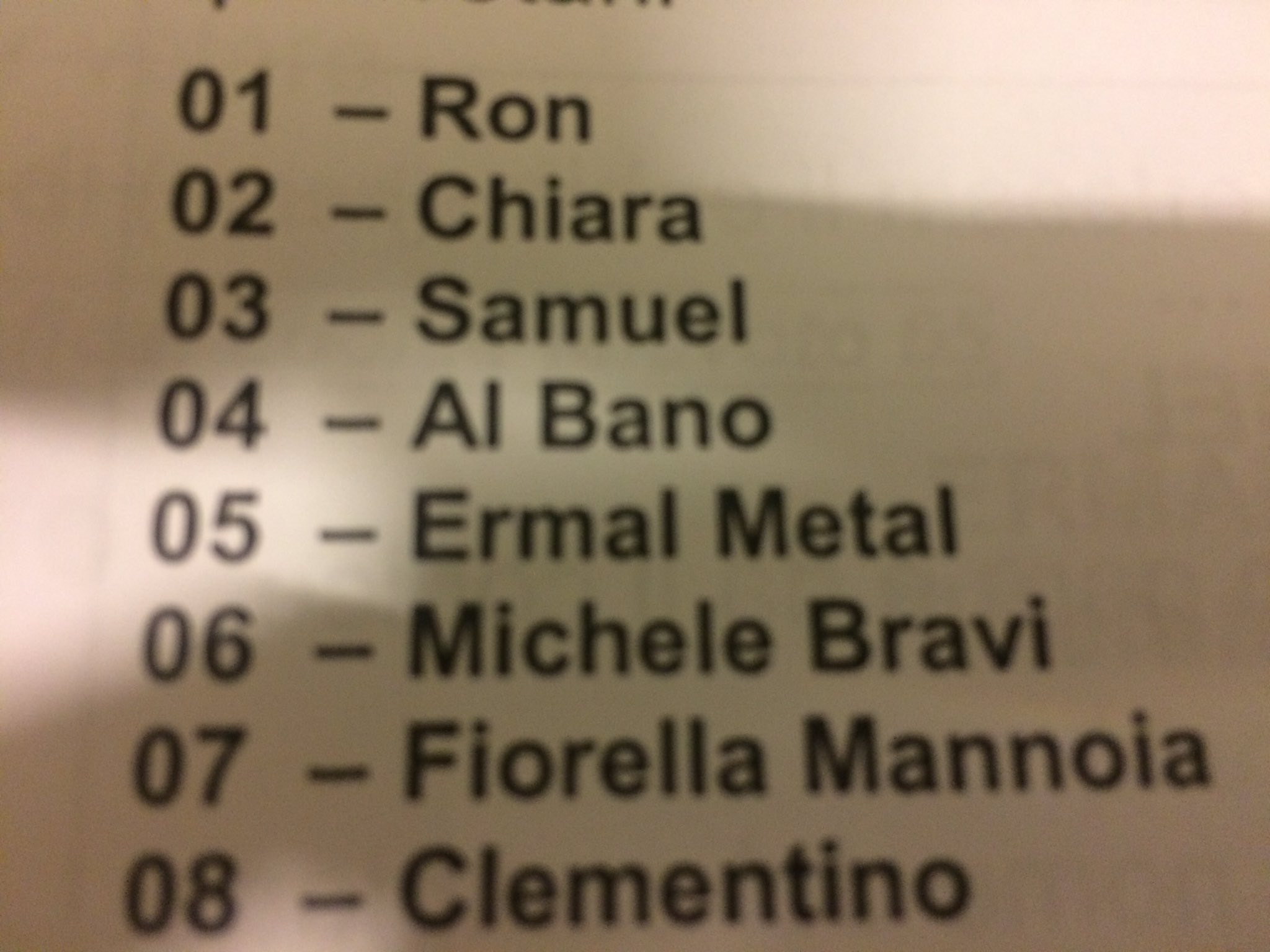 20 #Campioni – RON - Rosalino Cellamare, Chiara, Samuel, Al Bano Carrisi, Ermal Meta, Michele Bravi, Fiorella Mannoia, Clementino, Lodovica Comello, Gigi D'Alessio, Paola Turci, Marco Masini, Francesco Gabbani, Michele Zarrillo, Bianca Atzei, Sergio Sylvestre, Elodie Di Patrizi, Fabrizio Moro, Giusy Ferreri, Alessio Bernabei. Giorgio Moroder, Robin Schulz, Virginia Raffaele e tanti altri ospiti! Dalle 20.35 in diretta su Rai1, Radio2 e RaiPlay. UFFICIO STAMPA RAI #Sanremo2017