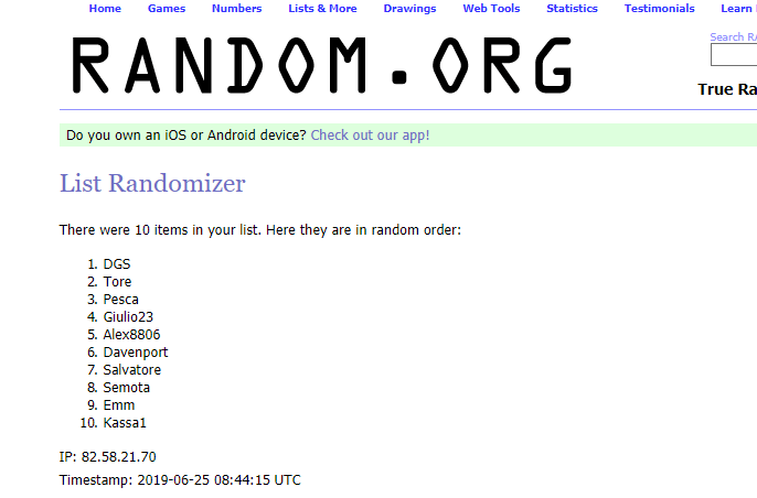 Questo l'ordine di scelta (DECISO TRAMITE RANDOM)