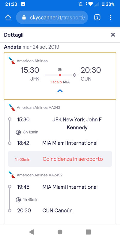 da aeroporto new york jfk 15.30 (21.30 italiane)