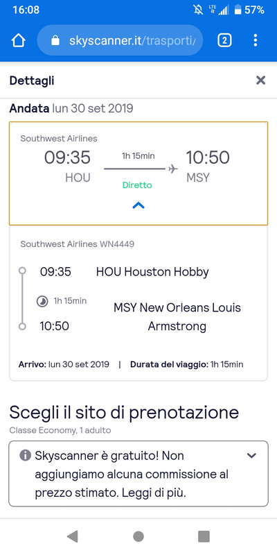 Offlinepartenza aeroporto houston hobby 16.35 (9.35)