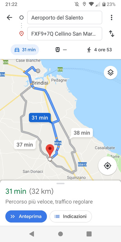 Arrivo aeroporto brindisi ore 21:25