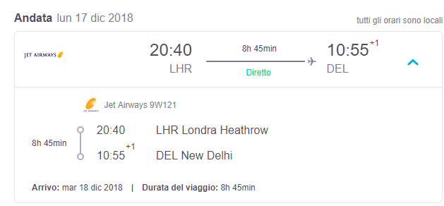 Ora di arrivo: 7.25 italiane del 19 Dicembre