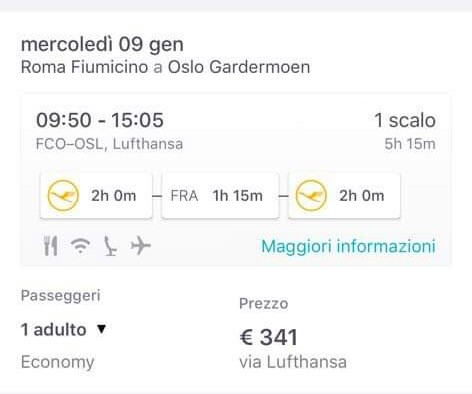 Location di arrivo: aeroporto di Oslo alle 15.05 italiane