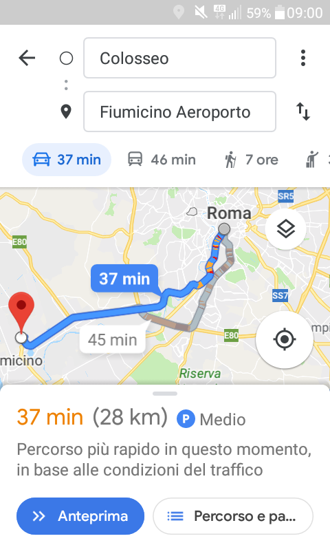 OfflineLocation di partenza: aeroporto di Fiumicino alle 9.50 italiane