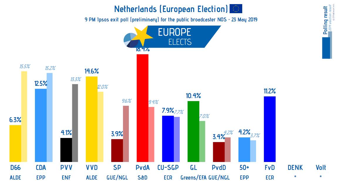 OfflineSono iniziate oggi le elezioni europee con il voto nei Paesi Bassi e nel Regno Unito. Lo spoglio avverrà solo la domenica, in contemporanea con tutte le altre nazioni, ma per ora sono usciti gli exit-poll che vedono un exploit del Partito Laburista al 18% guidato da Timmermans, raddoppiando i propri consensi, mentre si prevede arrivi quarto il partito che era dato come vincitore dai sondaggi, quello euroscettico FvD, tallonato dai Verdi che si aggirano intorno al 10%. Ai Paesi Bassi pe ora spettano 26 sedie nel parlamento. Domani sarà il turno di Irlanda e Repubblica Ceca.