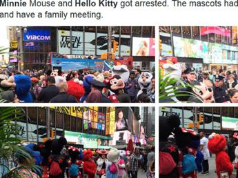 Minnie ed Hello Kitty se le sono date di santa ragione nella centralissima Times Square a New York. Non si è trattato di uno scherzo, né di una pubblicità o di un flash mob originale tanto che, riporta il MailOnline, per dividere le due donne in costume da eroine dei fumetti è dovuta intervenire addirittura la polizia della Grande Mela.