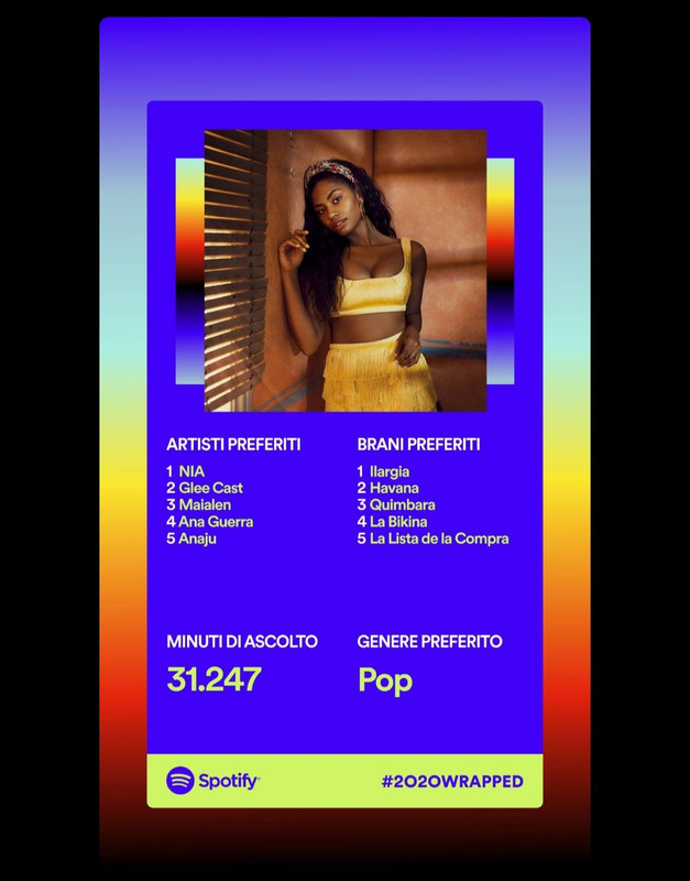 OfflinePer una volta tanto sono contento e trovo che sia una playlist abbastanza rappresentativa dell'anno appena trascorso, forte dei circa 40mila minuti di ascolto (quindi il bacino di partenza era probabilmente più ampio). Mi aspettavo più Sanremo però è anche vero che l'album è stato soppiantato quasi subito ed in blocco da tutti quelli delle altre selezioni nazionali durante fine febbraio, marzo e tutto il periodo del lockdown forzato - quindi tutto sommato ci può stare che siano rimaste solo quelle che ho continuato ad ascoltare attivamente