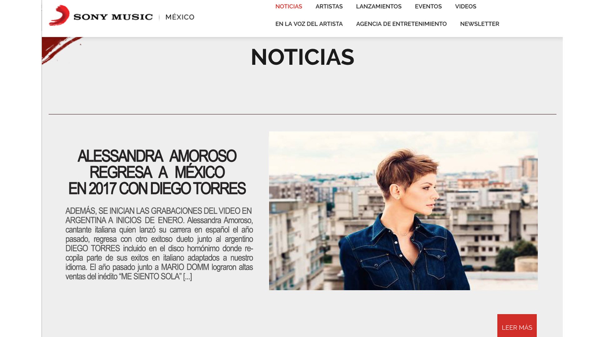OfflineAlessandra Amoroso torna in Sud America con il quarto singolo estratto dal suo primo album in spagnolo, "Sin una Nube" in duetto con l'argentino Diego Torres. Per chi non lo sapesse si tratta di uno dei più famosi cantanti argentini. In carriera ha anche un duetto con la nostra Mina, nella versione spagnola di "Brivido Felino", "Corazòn Felino", nel 2007 😀