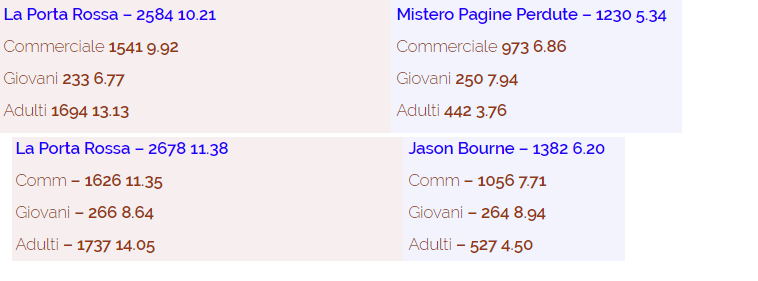 Mentre, ecco, 'La Porta Rossa', facendo quasi la metà di share tra i giovani di quel che faccia tra gli over, non so se sia nemmeno definibile quale tale.