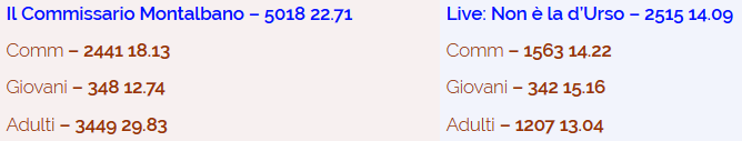Comunque, alla fine, se si considerino non dico i giovani ma gli under55, Montalbano ieri ha fatto 1.55 milioni contro i 1.3 milioni della scrausa proposta della D'Urso. Siam lì.