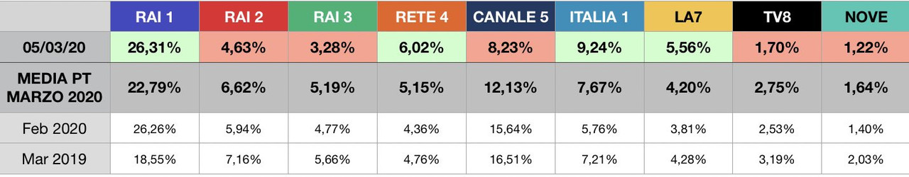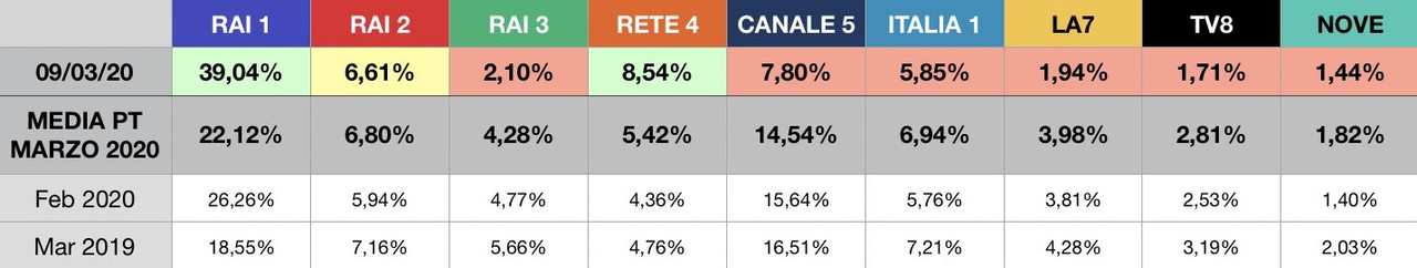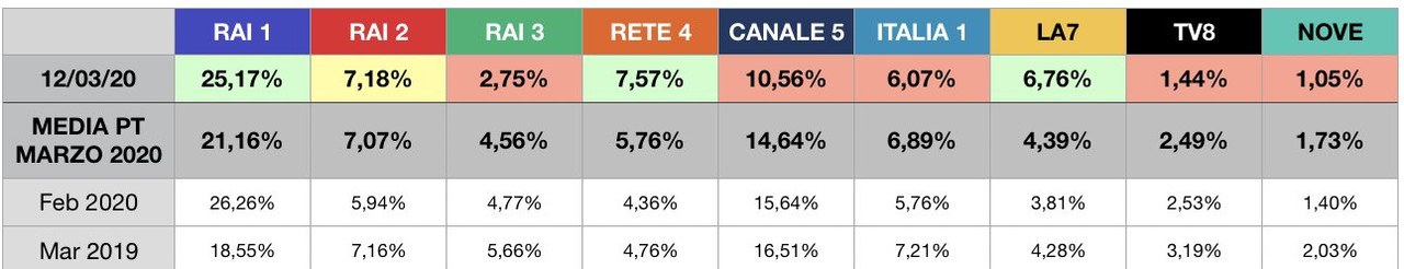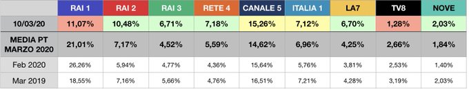 Nula. Causa coronavirus molta più gente è collegata alla TV, ma non sceglie Uomini e donne (è aumentato solo di 3/4K), quindi si abbassa lo share (essendo più ampia la platea). È anche giustificabile il fatto che uno non inizi a seguire U&D senza averlo mai visto: non capirebbe niente.
