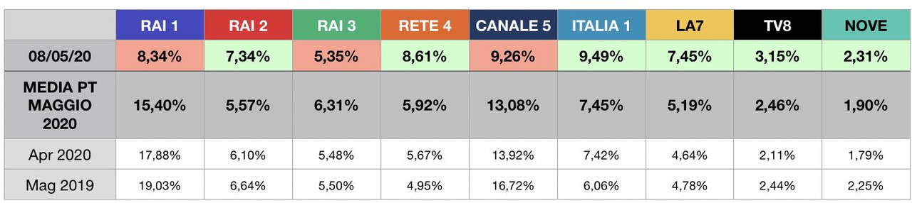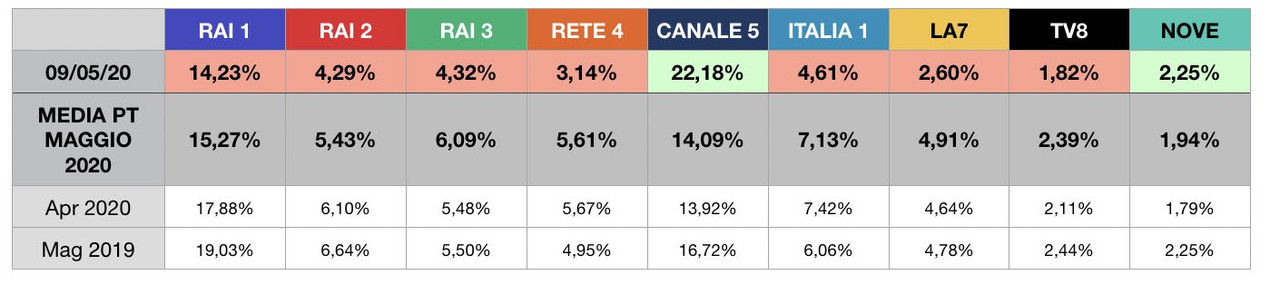 . Inoltre, bene anche le reti cadette Mediaset che sono andate meglio di quelle Rai