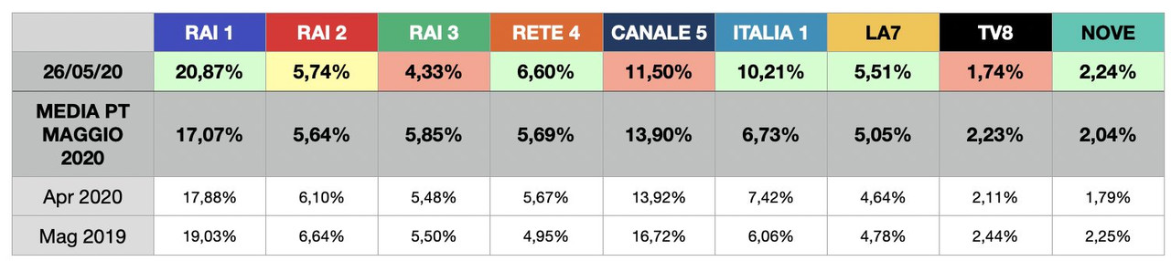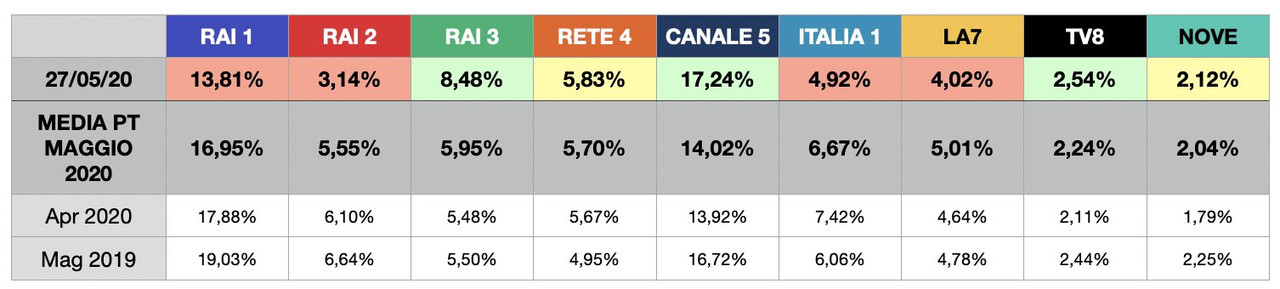) , però abbastanza bene Il Gladiatore in replica e dopo 20 anni dall'uscita che, nella rete Mediaset principale meno adatta, fa comunque più ascolti di Live - Non è la D'Urso