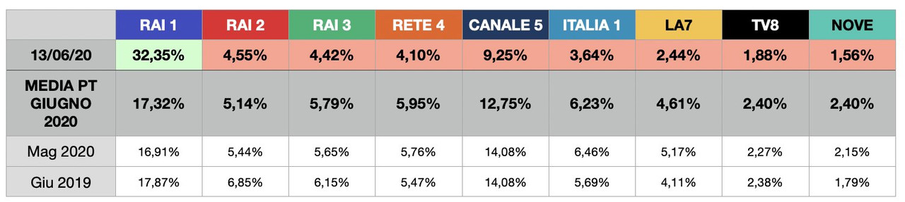. Guardia del corpo , alla sua millesima messa in onda, fa comunque un risultato più o meno accettabile, vista la fortissima concorrenza su Rai 1, l'inizio della stagione estiva, la gente che sta uscendo sempre di più, ecc.