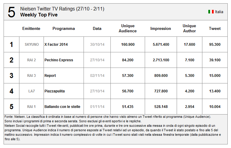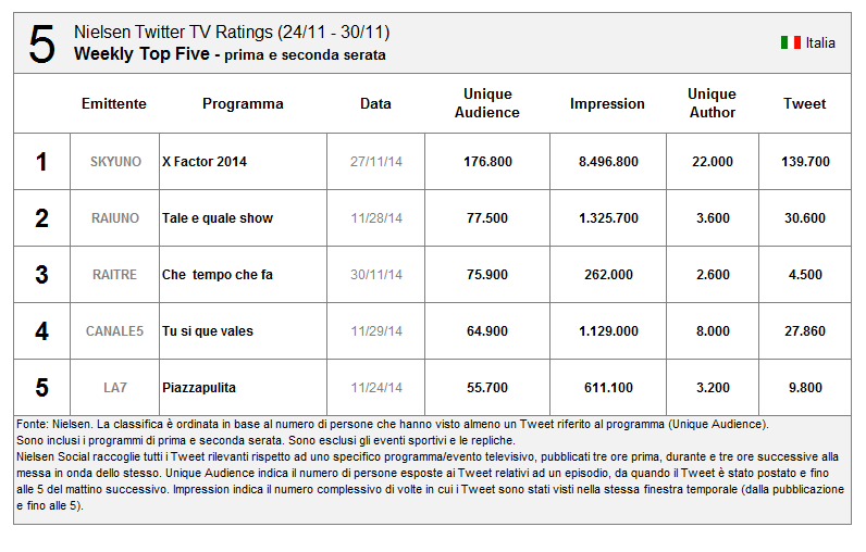 OfflineEcco la nuova #NTTR top5. Scopri di più su http://t.co/siL91qr15P. Segui live l'evento di domani con #NielsenSocialTV pic.twitter.com/fzTbGkuaJ1