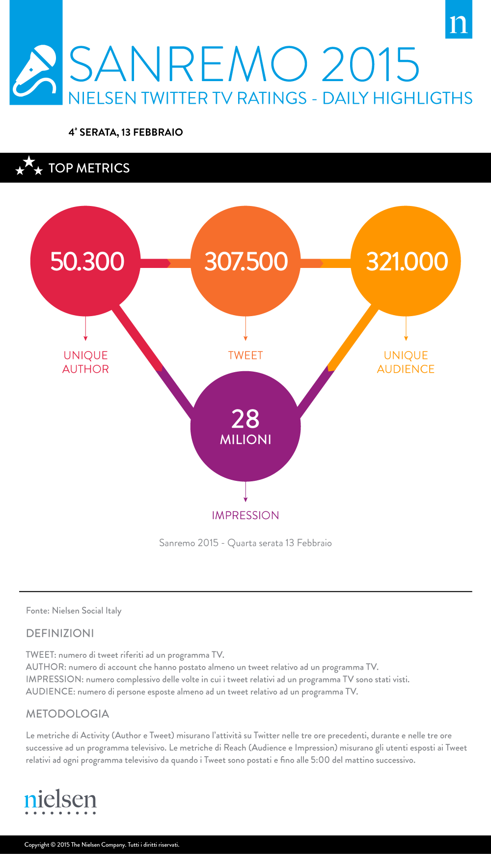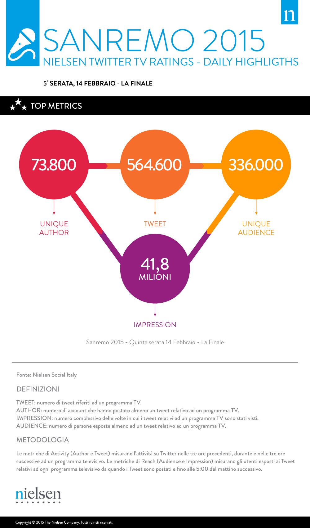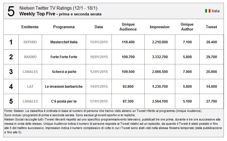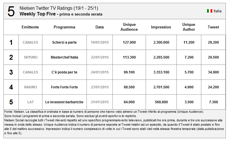 Per quanto riguarda Sanremo un buon risultato (ma inferiore alle aspettative secondo molti esperti di Social TV, con la prima, seconda e terza serata superiori alla finale)