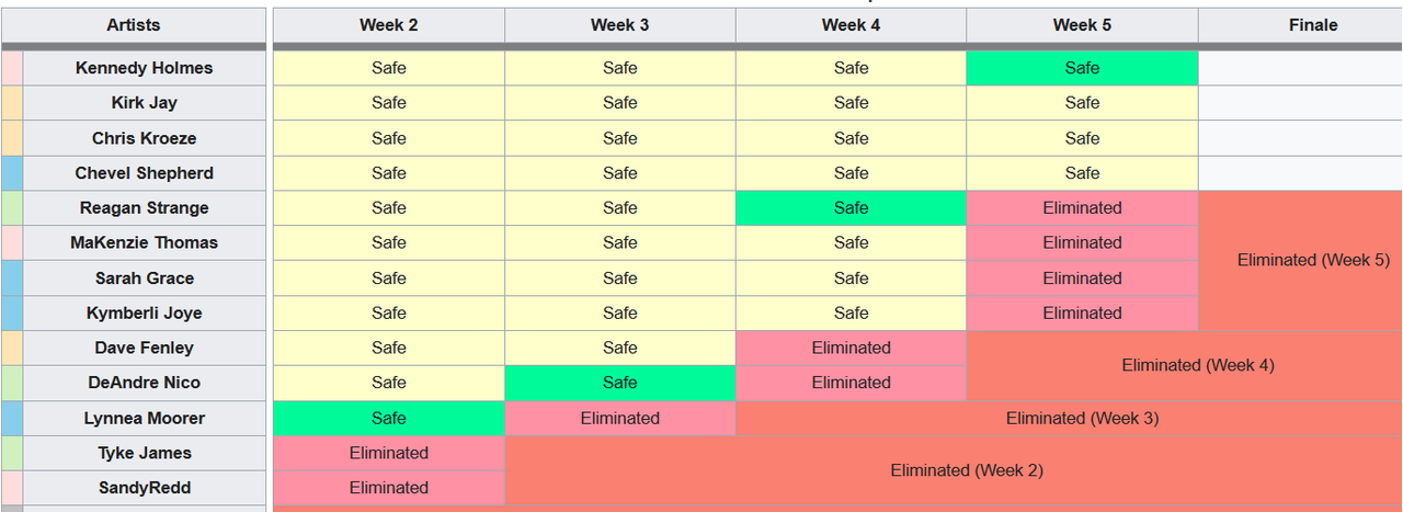 A 'sto punto, ad esempio, se ne eliminassero uno in più in "week 3" e facessero la finale a 5, quindi eliminandone sempre 2 alla volta per i 4 live pre-finale, sarebbe ancora più ragionevole.