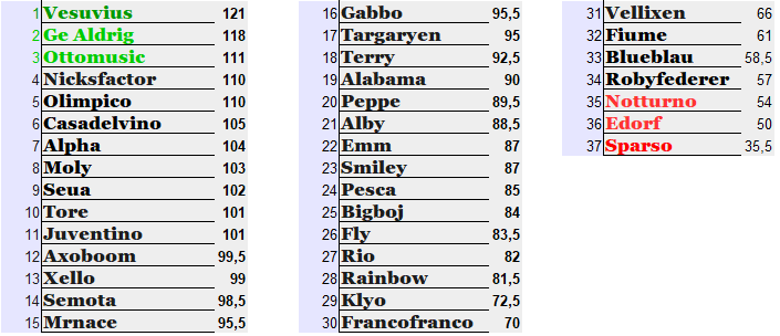 @xello @smiley @Francofranco @Targaryen @Emm @Gennz @BlueBlau @OttoMusic @edorf @Alabama Monroe @Olimpico85 @FiumediNy @Fly18 @Vesuvius21 @tore @Rio91 @klyo @Bigboj @NotturnoManto @terry91 @monyalpha @NicksFactor @Casadelvino @sparso @pesca @seua84 @semota @robyfederer @Vellixen @ge_aldrig_upp @Moly @axoboom2 @mrnace @peppe-26 @Gabbo @Rainbow93 @Alby