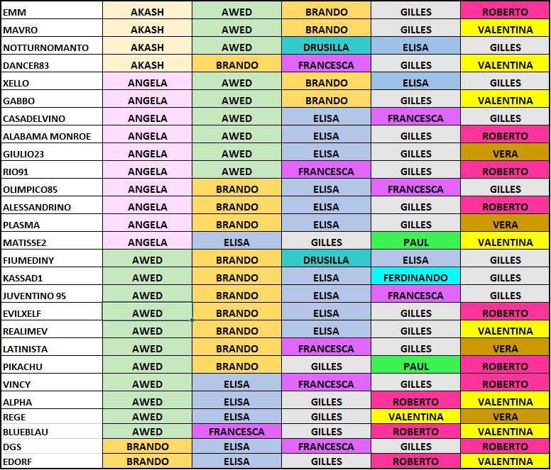 @Emm - @Mavro - @JoJo - @NotturnoManto - @dancer83tp - @xello - @Gabbo - @Iry8 - @Casadelvino - @Alabama Monroe - @Giulio23 - @Rio91 - @Olimpico85 - @alessandrino - @Plasma - @Matisse2 - @Bigboj - @FiumediNy - @KassaD1 - @Gennz - @L'indovino - @Evil - @realimev - @Latinista - @Pikachu - @vincy - @monyalpha - @NicksFactor - @rege - @BlueBlau - @DGS - @edorf - @checco312 - @lukeyyy - @Il principe delle rose rosse