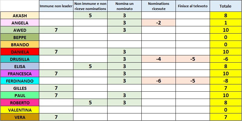 Dopo attenta valutazione, si delibera che il regolamento sull'assegnazione dei punti per la classifica di puntata rimarrà (al momento) invariato. I concorrenti che conquisteranno l'immunità di squadra durante le prossime dirette, otterranno 7 punti. L'eventuale elezione di un "leader" assoluto con poteri speciali, invece, risulterà nell'assegnazione dei canonici 15 punti.