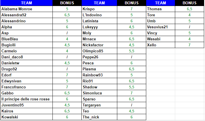 @krispo. Un buon team ma allora come mai solo un venticinquesimo posto? Una sola parola: SCHEDINA!! Slo 2 match indovinati e troppi bonus persi. Che peccato!