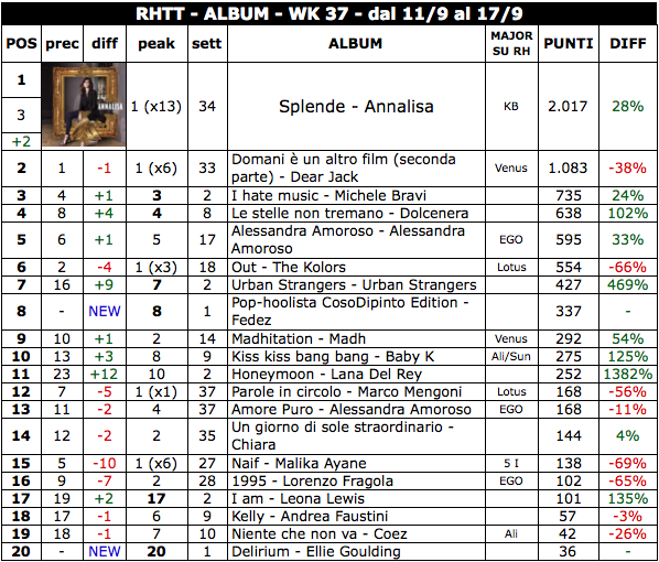 Le settimane in classifica Fimi degli ex talent presenti in top 20